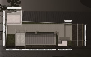 AKSES UTAMA DAN TERDAPAT JUGA AKSES LAINNYA YANG DIMANA MENGARAHKAN KITA KE AREA KORIDOR YANG DIMANA SALAH SATU SISI TERDAPAT RUANG2 BERUPA KAMAR TIDUR TAMU, RUANG MEETING, BATHROOM, PANTRY, DAN TERHUBUNG DENGAN GARASI.