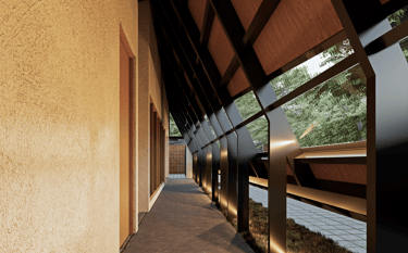 KORIDOR YANG MENJADI AKSES SIRKULASI PENGGUNA BANGUNAN INI UNTUK MENGAKSES KE TIAP RUANG YANG TERDAPAT PADA BANGUNAN INI. DENGAN ADANYA SEDIKIT BUKAAN DAN ADANYA SKYLIGHT SEHINGGA KORIDOR MENJADI TERANG KARENA CAHAYA ALAMI DAN SEJUK KARENA TERDAPAT AKSES UDARA ALAMI DARI BAWAH SISI ATAP.